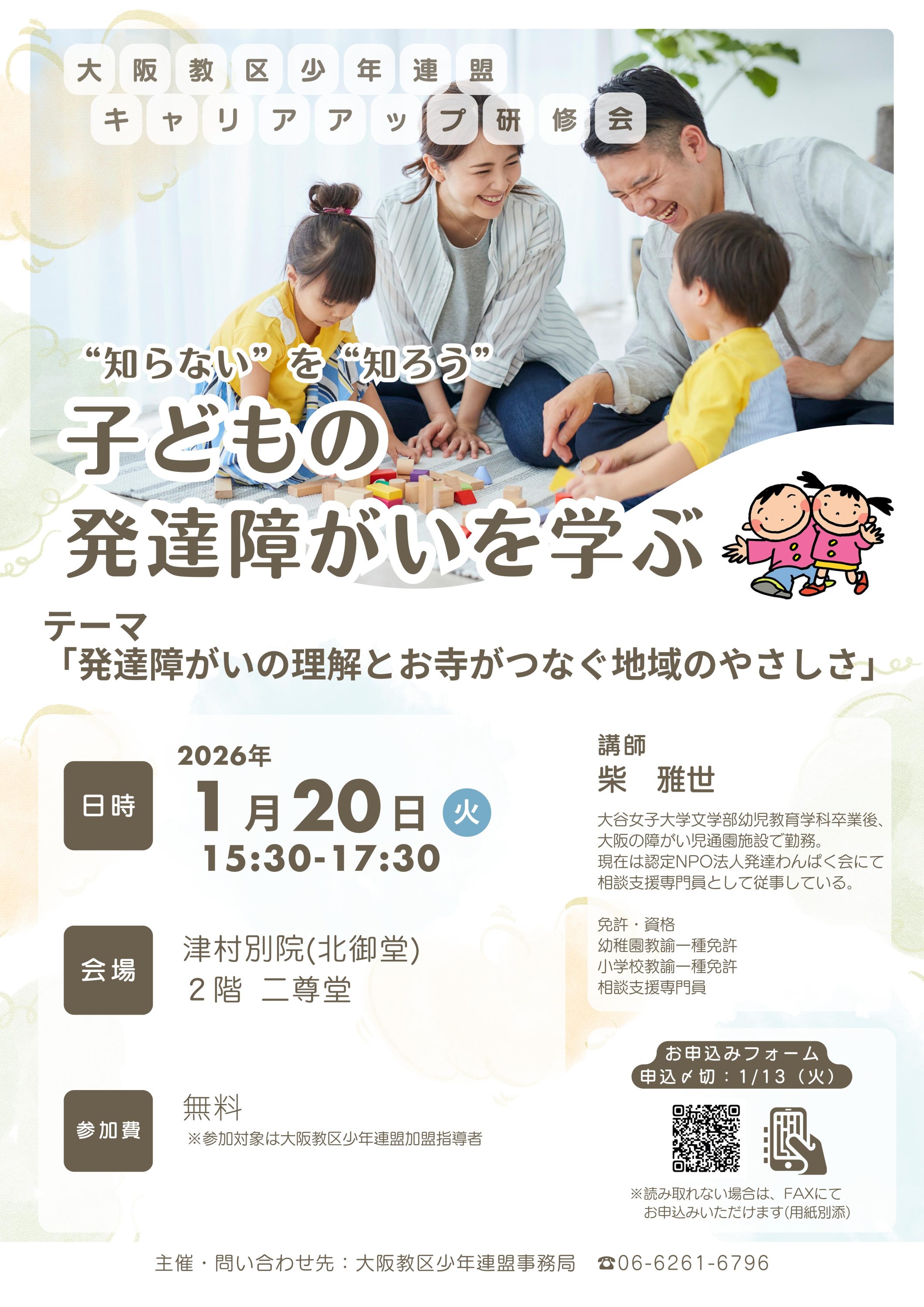 お知らせ トップページ 〉 お知らせ 〉 トピックス トピックス 少年連盟キャリアアップ研修会 大阪教区少年連盟キャリアアップ研修会 大阪教区少年連盟では、加盟単位会指導者の... 大阪サンガ2025年11月号 2511.shinpo 教区・別院からのお知らせ エリアレポートおおさか 新人... 第59回児童生徒作品展作品募集 大阪教区少年連盟では、本年も本願寺津村別院報恩講の協賛行事として「児童生徒作品... 2025(令和7)年度 実践運動計画書 2025(令和7)年度 大阪教区実践運動計画書(データ版)となります。 P0... 大阪サンガ2025年8月号 2508.shinpo 教区・別院からのお知らせ エリアレポートおおさか 新人... 『アラフォーからはじめる仏教』開催について 『アラフォーからはじめる仏教』 〔主 催〕 浄土真宗本願寺派 大阪教区布教団 ... 大阪教区少年連盟 機関紙「アミーゴ№72」発刊について この度、大阪教区少年連盟は、「アミーゴ№72」結成60周年記念号を発刊いたしま... 大阪教区少年連盟60周年記念事業 「ほとけの子 けはカルタ」作成について かねてより連盟の会員様よりご要望がありました「教材の作成」につきまして、なかな... 2024(令和6)年大阪選挙区選挙会の結果(公示) 動画素材作成のお知らせ 大阪教区子ども・若者ご縁づくり推進委員会において、既にYouTubeやSNSで... 「お米をひと握り(一合)持ち寄り」ほッとけ米プロジェクト <貧困の克服に向けて ~Dāna for World Peace~ >子どもた...